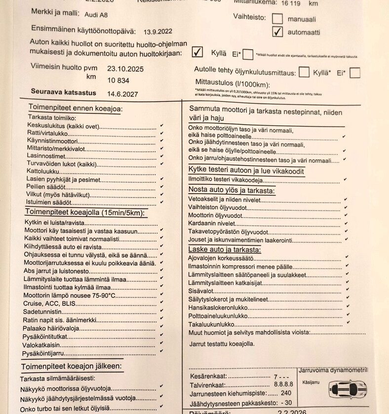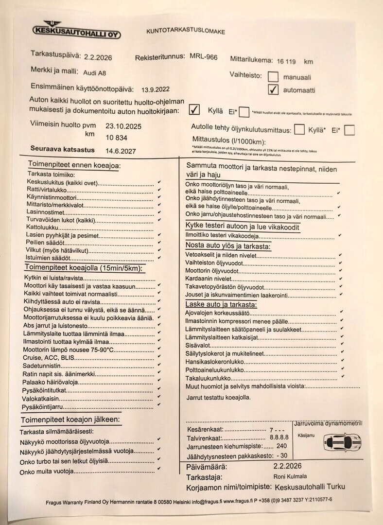 Voit varata auton kolmeksi päiväksi maksamalla 200 € varausmaksun. Maksettuasi varausmaksun, poistamme auton verkkokaupasta kaupan teon ajaksi. Varauksen jälkeen myyjämme ottavat sinuun yhteyttä mahdollisimman nopeasti. Varausmaksu huomioidaan kauppasummassa ja se palautetaan tilillesi, jos kauppa ei toteudukaan. Lopullinen kauppasopimus tehdään yhdessä myyjän kanssa.