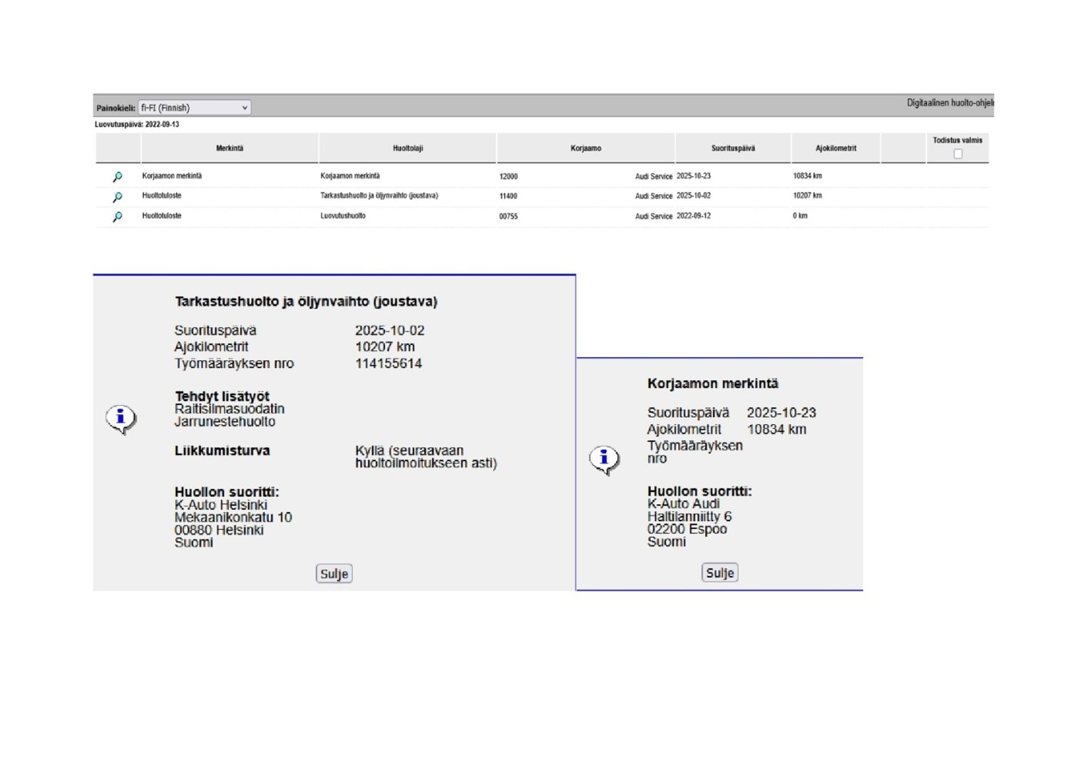 Ajoneuvosi tiedot