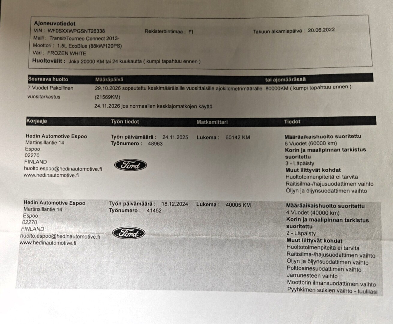 • Täydellinen merkkiliikkeen huoltokirja