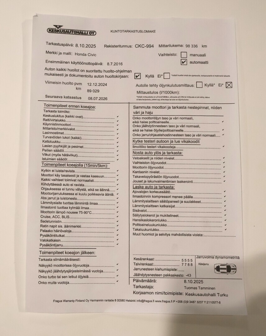 Voit varata auton kolmeksi päiväksi maksamalla 200 € varausmaksun. Maksettuasi varausmaksun, poistamme auton verkkokaupasta kaupan teon ajaksi. Varauksen jälkeen myyjämme ottavat sinuun yhteyttä mahdollisimman nopeasti. Varausmaksu huomioidaan kauppasummassa ja se palautetaan tilillesi, jos kauppa ei toteudukaan. Lopullinen kauppasopimus tehdään yhdessä myyjän kanssa.
