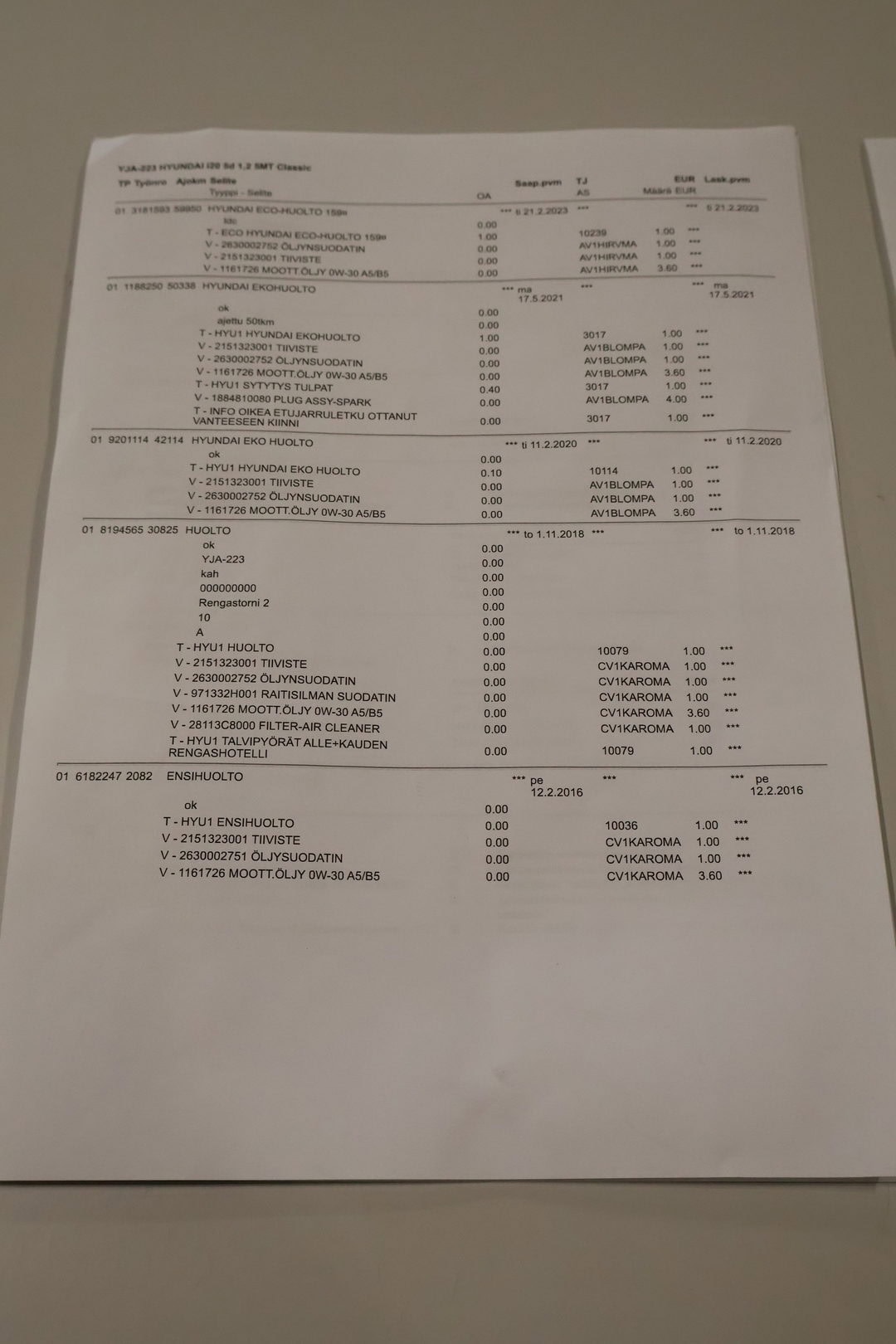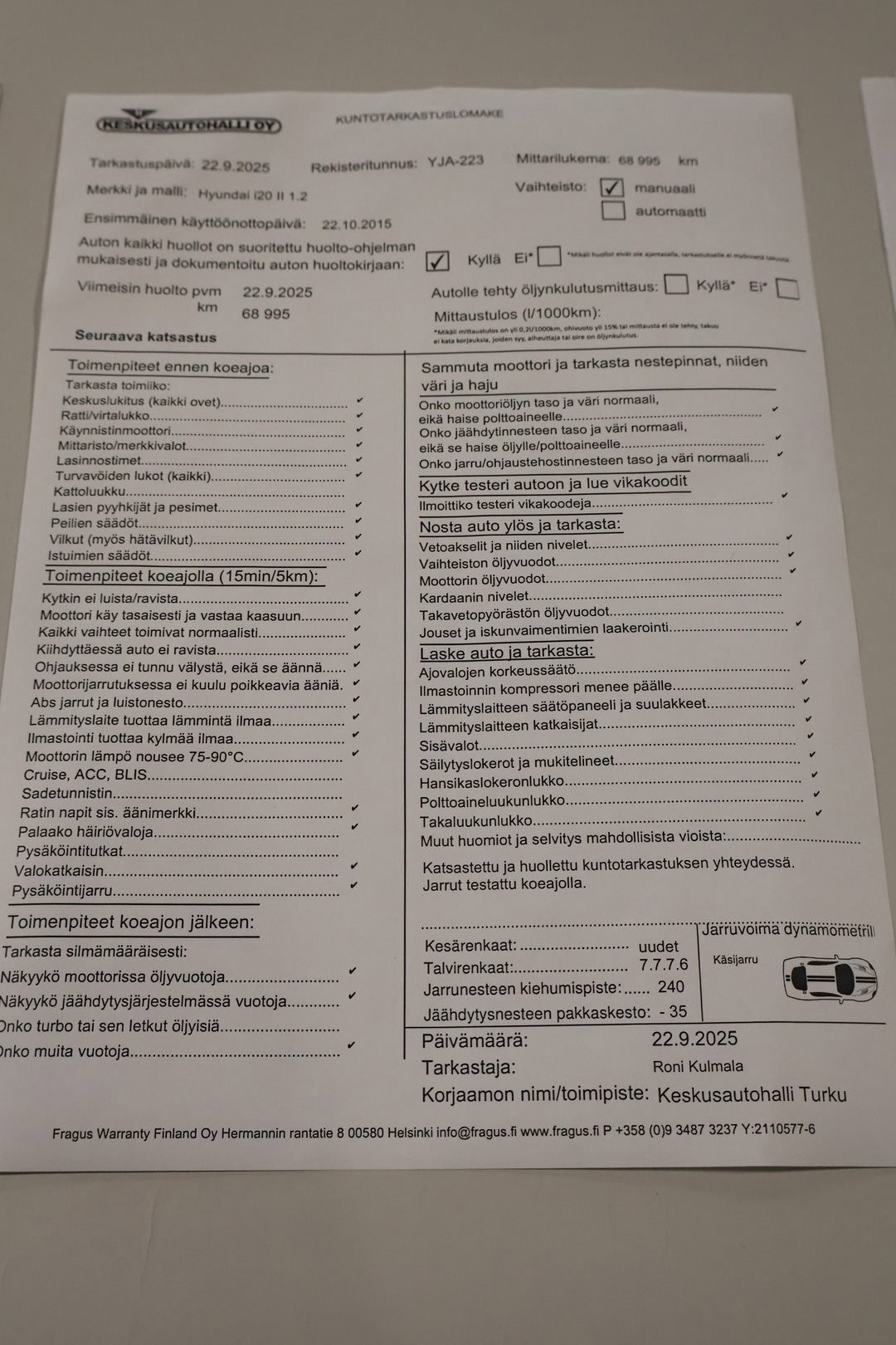 • Täydellinen merkkiliikkeen huoltokirja