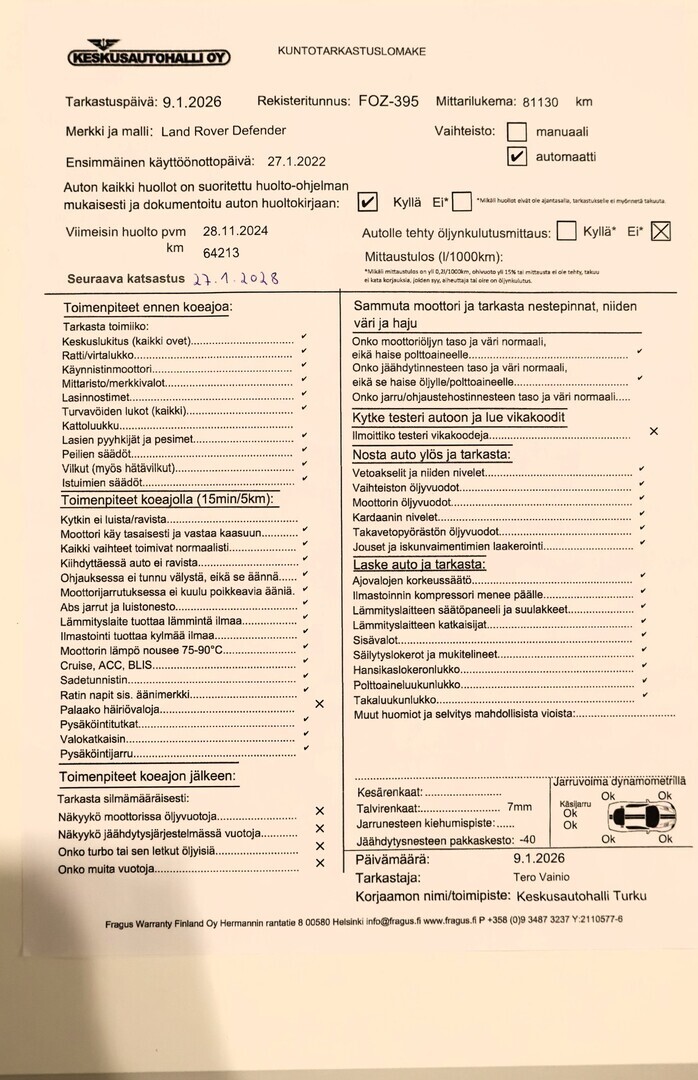 Voit varata auton kolmeksi päiväksi maksamalla 200 € varausmaksun. Maksettuasi varausmaksun, poistamme auton verkkokaupasta kaupan teon ajaksi. Varauksen jälkeen myyjämme ottavat sinuun yhteyttä mahdollisimman nopeasti. Varausmaksu huomioidaan kauppasummassa ja se palautetaan tilillesi, jos kauppa ei toteudukaan. Lopullinen kauppasopimus tehdään yhdessä myyjän kanssa.