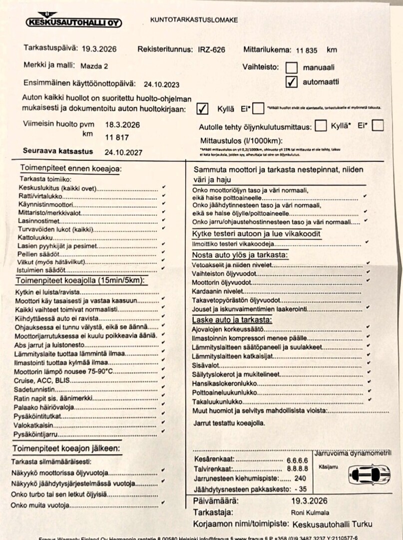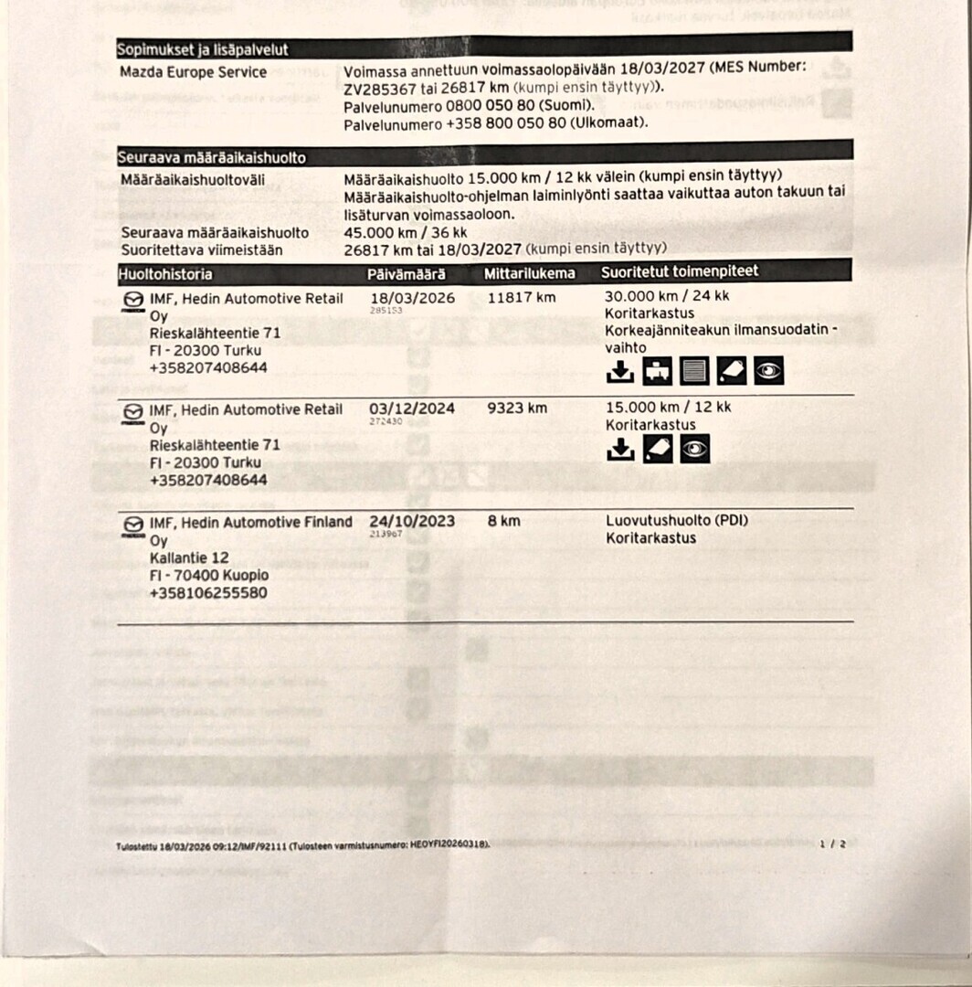 • Täydellinen merkkiliikkeen huoltokirja