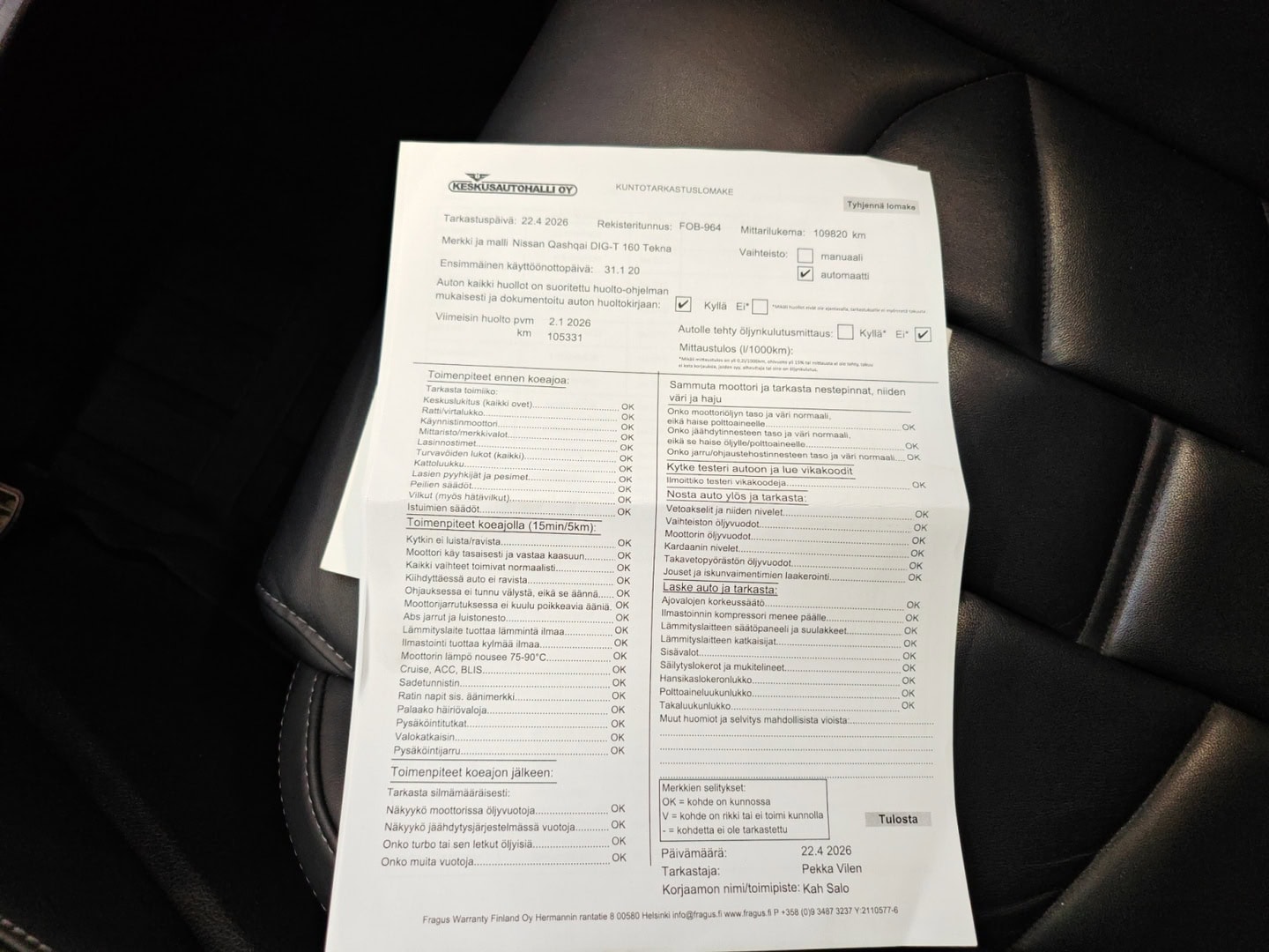 • Huoltokirja