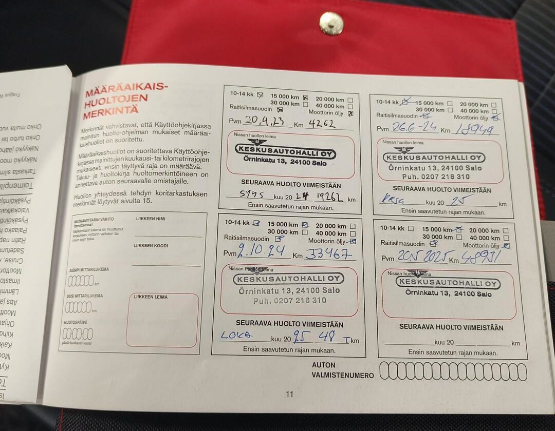 • Täydellinen merkkiliikkeen huoltokirja