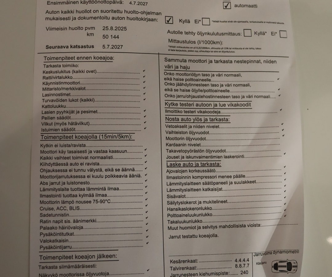 täydellinen merkkiliikkeen huoltokirja