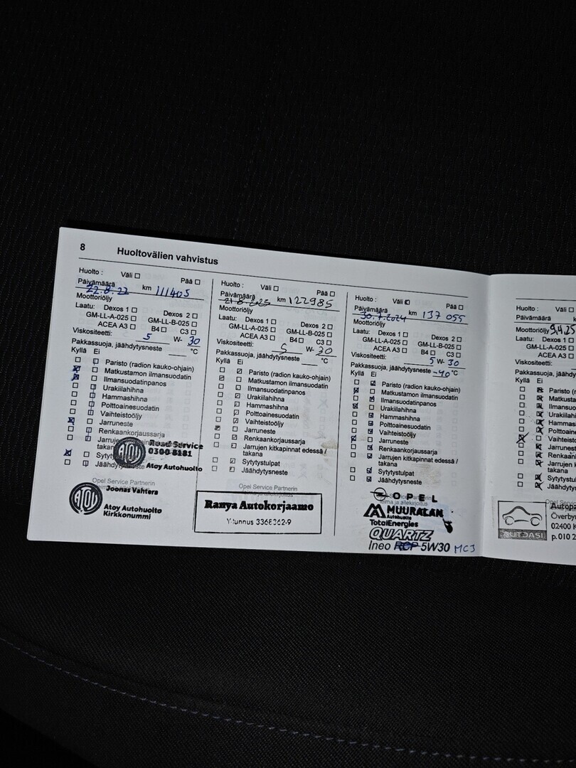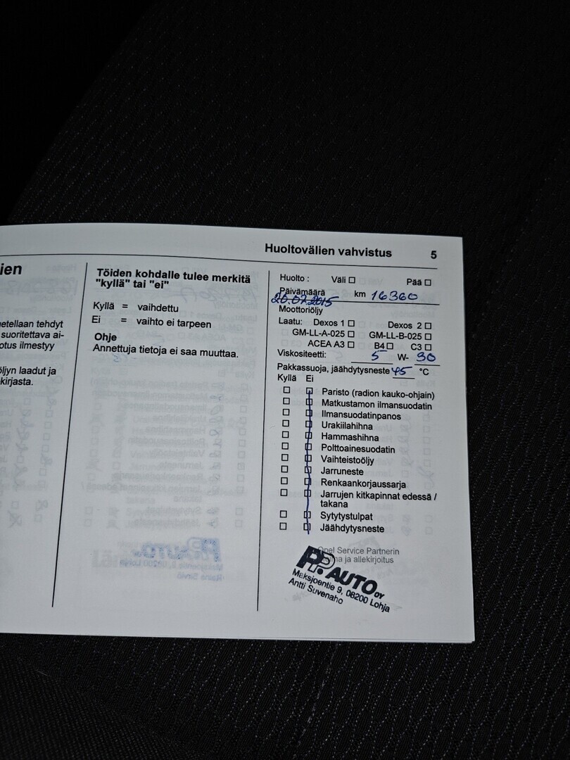 • Täydellinen merkkiliikkeen huoltokirja