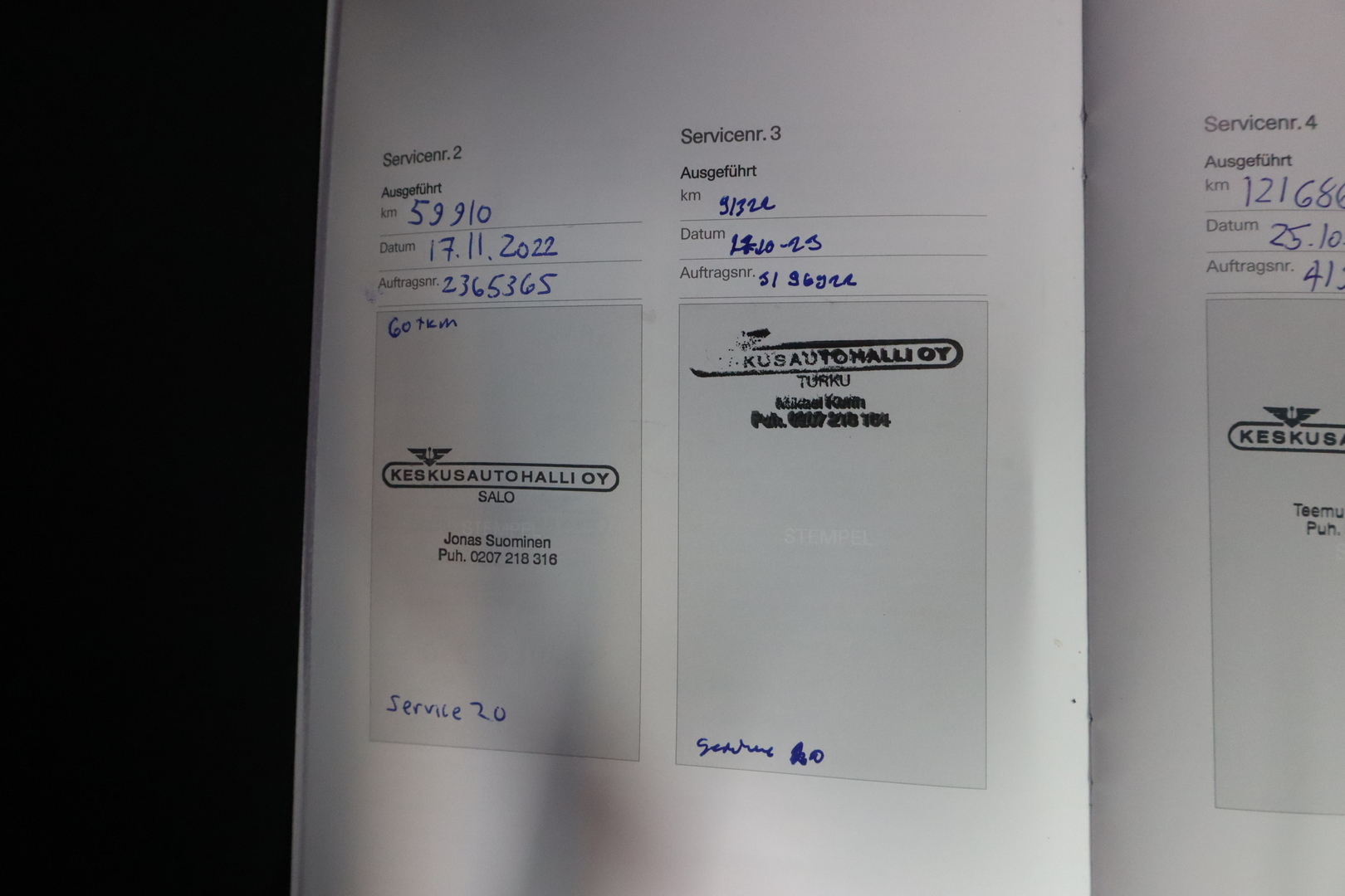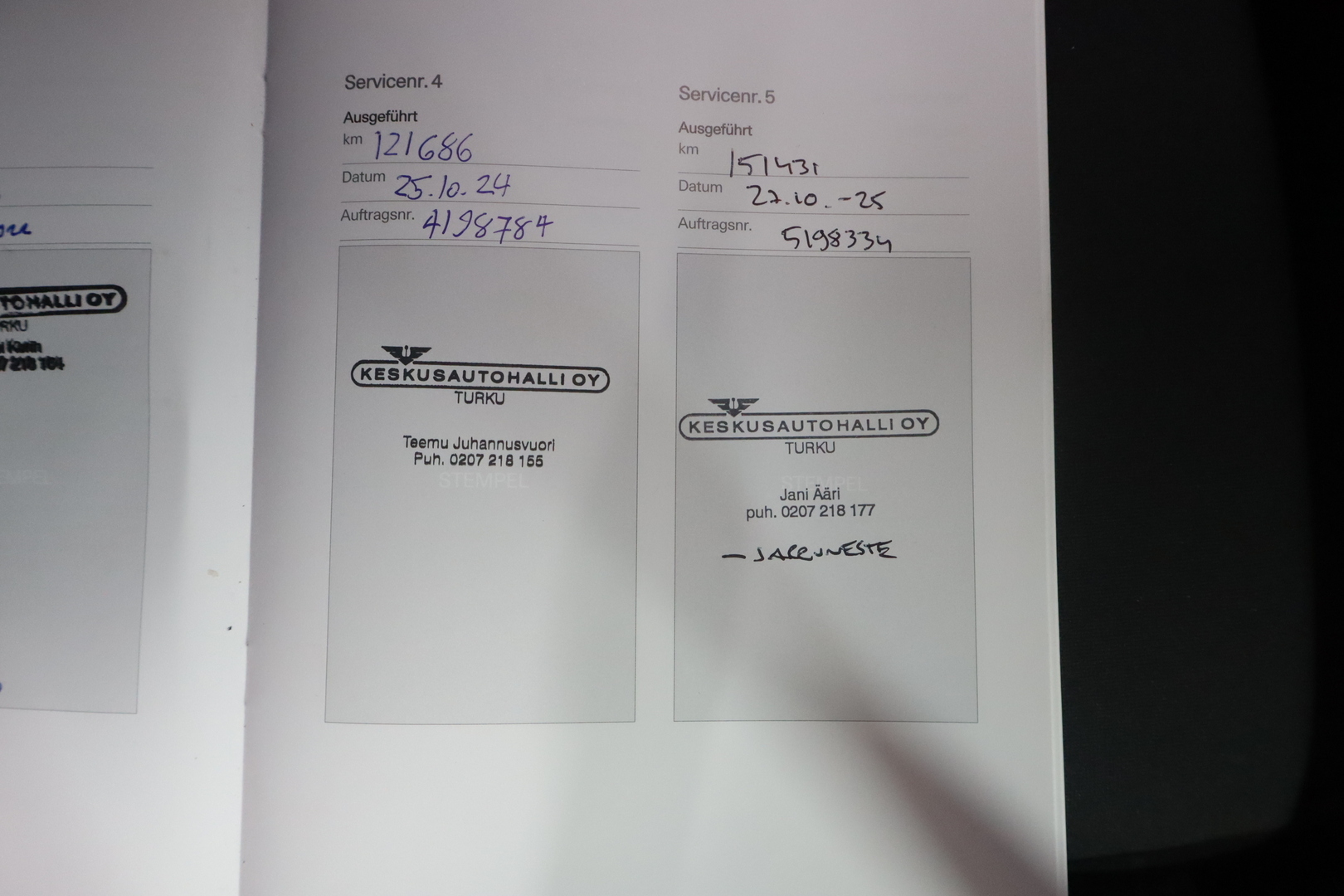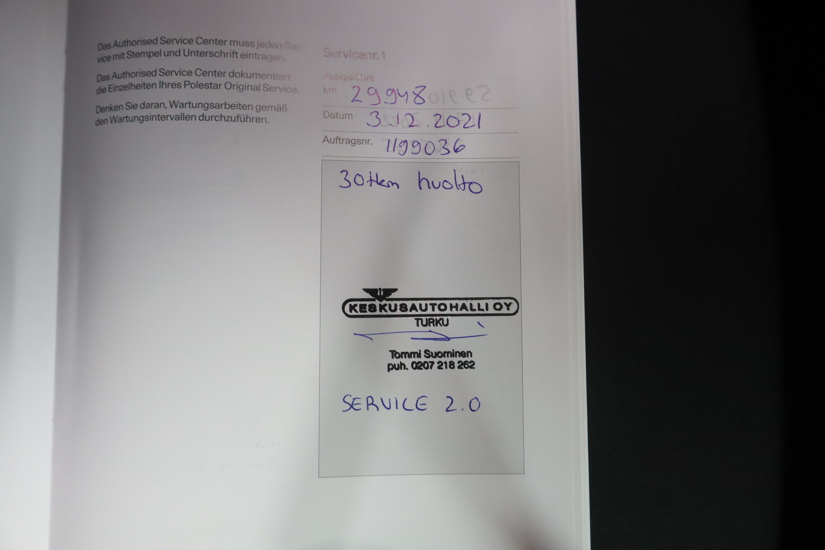 • Täydellinen merkkiliikkeen huoltokirja