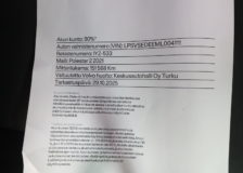 Voit varata auton kolmeksi päiväksi maksamalla 200 € varausmaksun. Maksettuasi varausmaksun, poistamme auton verkkokaupasta kaupan teon ajaksi. Varauksen jälkeen myyjämme ottavat sinuun yhteyttä mahdollisimman nopeasti. Varausmaksu huomioidaan kauppasummassa ja se palautetaan tilillesi, jos kauppa ei toteudukaan. Lopullinen kauppasopimus tehdään yhdessä myyjän kanssa.