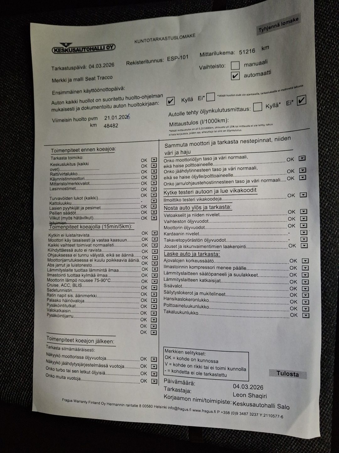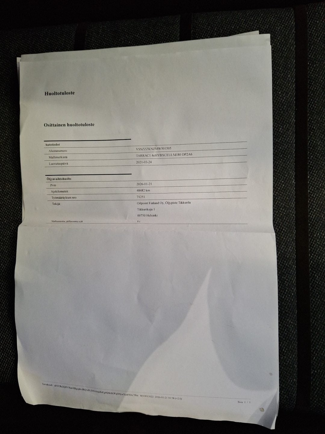 • Täydellinen huoltokirja