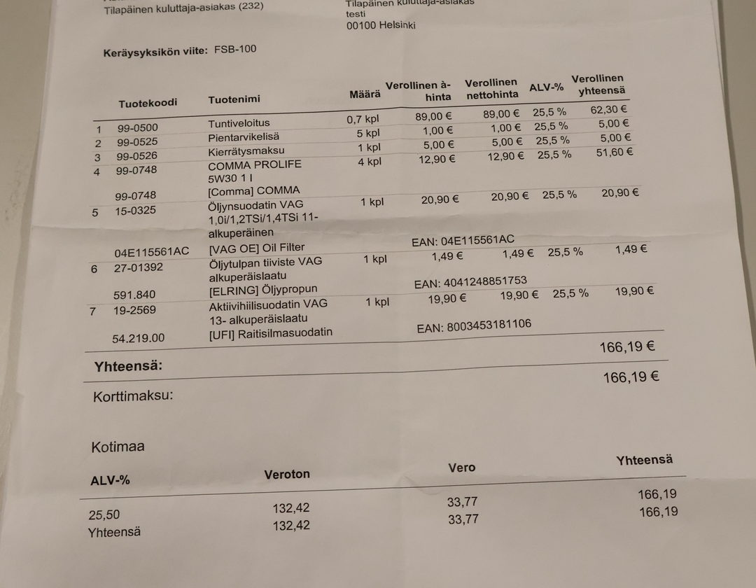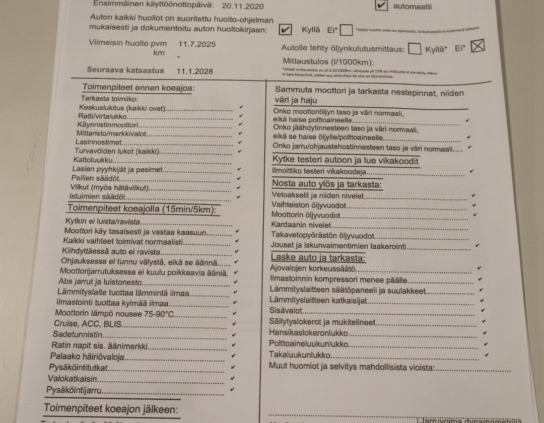 • Täydellinen huoltokirja