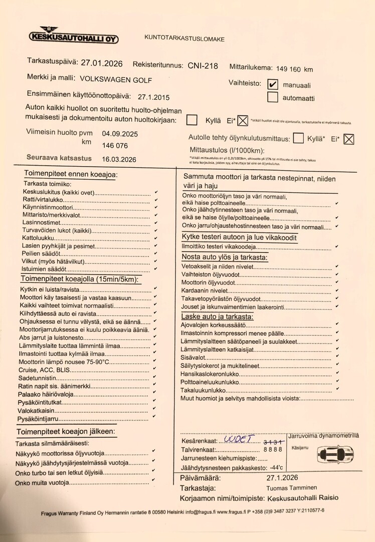 Voit varata auton kolmeksi päiväksi maksamalla 200 € varausmaksun. Maksettuasi varausmaksun, poistamme auton verkkokaupasta kaupan teon ajaksi. Varauksen jälkeen myyjämme ottavat sinuun yhteyttä mahdollisimman nopeasti. Varausmaksu huomioidaan kauppasummassa ja se palautetaan tilillesi, jos kauppa ei toteudukaan. Lopullinen kauppasopimus tehdään yhdessä myyjän kanssa.