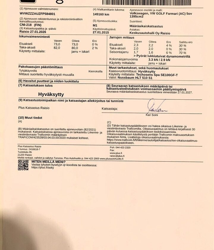 Voit varata auton kolmeksi päiväksi maksamalla 200 € varausmaksun. Maksettuasi varausmaksun, poistamme auton verkkokaupasta kaupan teon ajaksi. Varauksen jälkeen myyjämme ottavat sinuun yhteyttä mahdollisimman nopeasti. Varausmaksu huomioidaan kauppasummassa ja se palautetaan tilillesi, jos kauppa ei toteudukaan. Lopullinen kauppasopimus tehdään yhdessä myyjän kanssa.