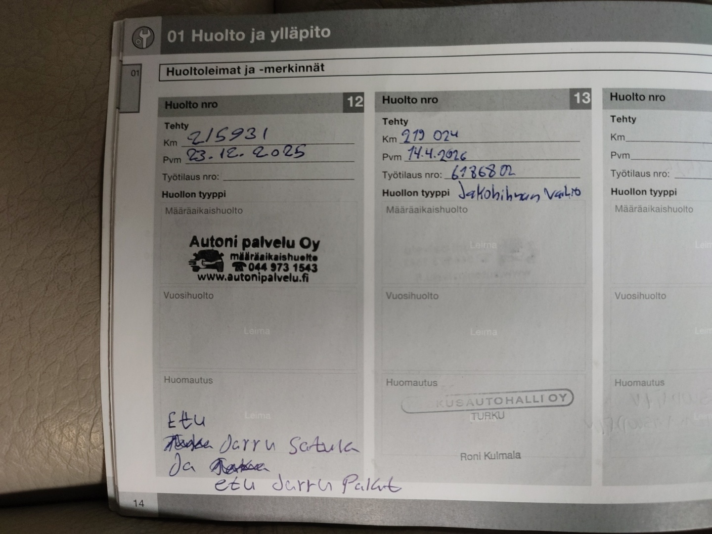 Ajoneuvosi tiedot