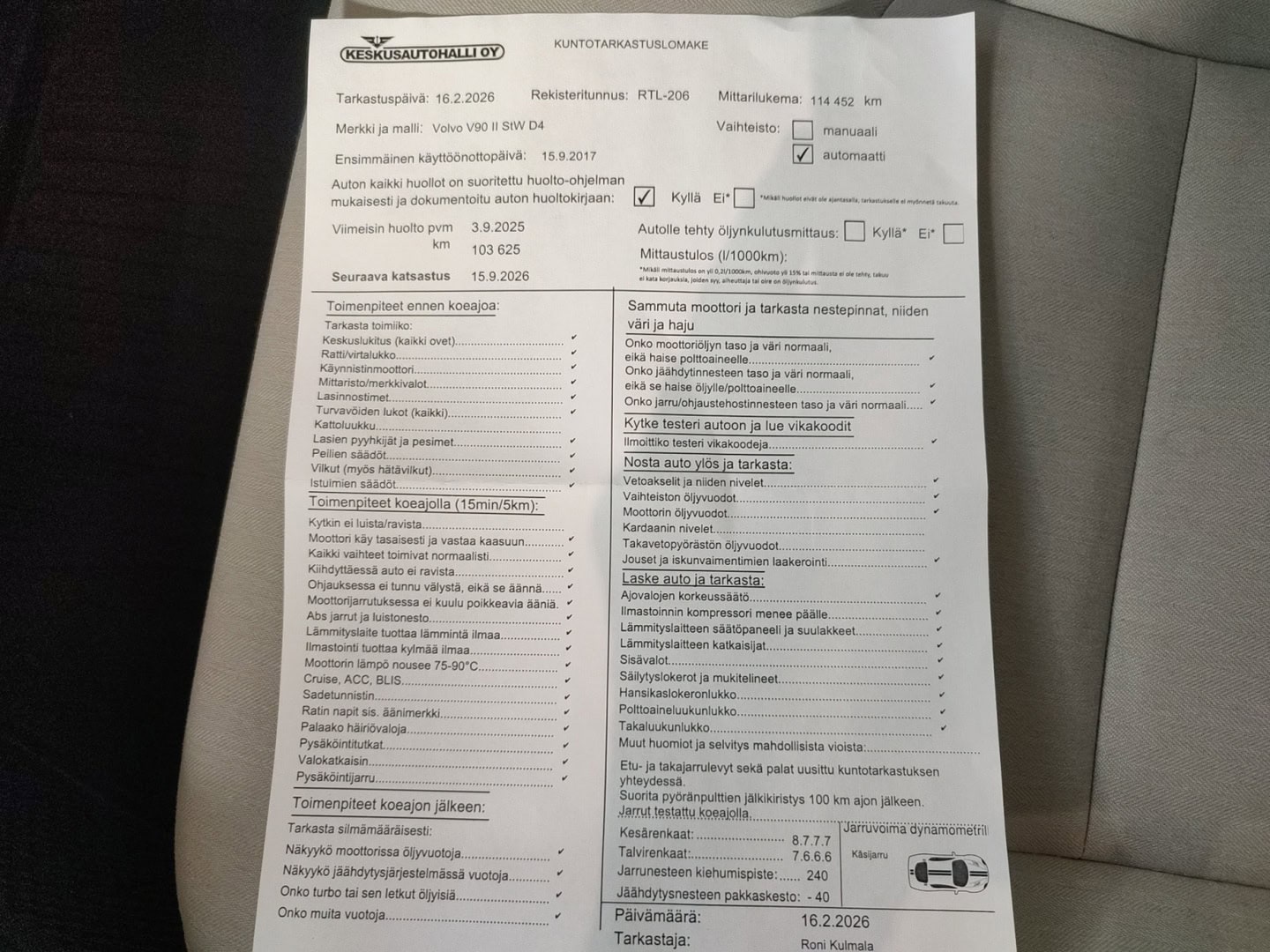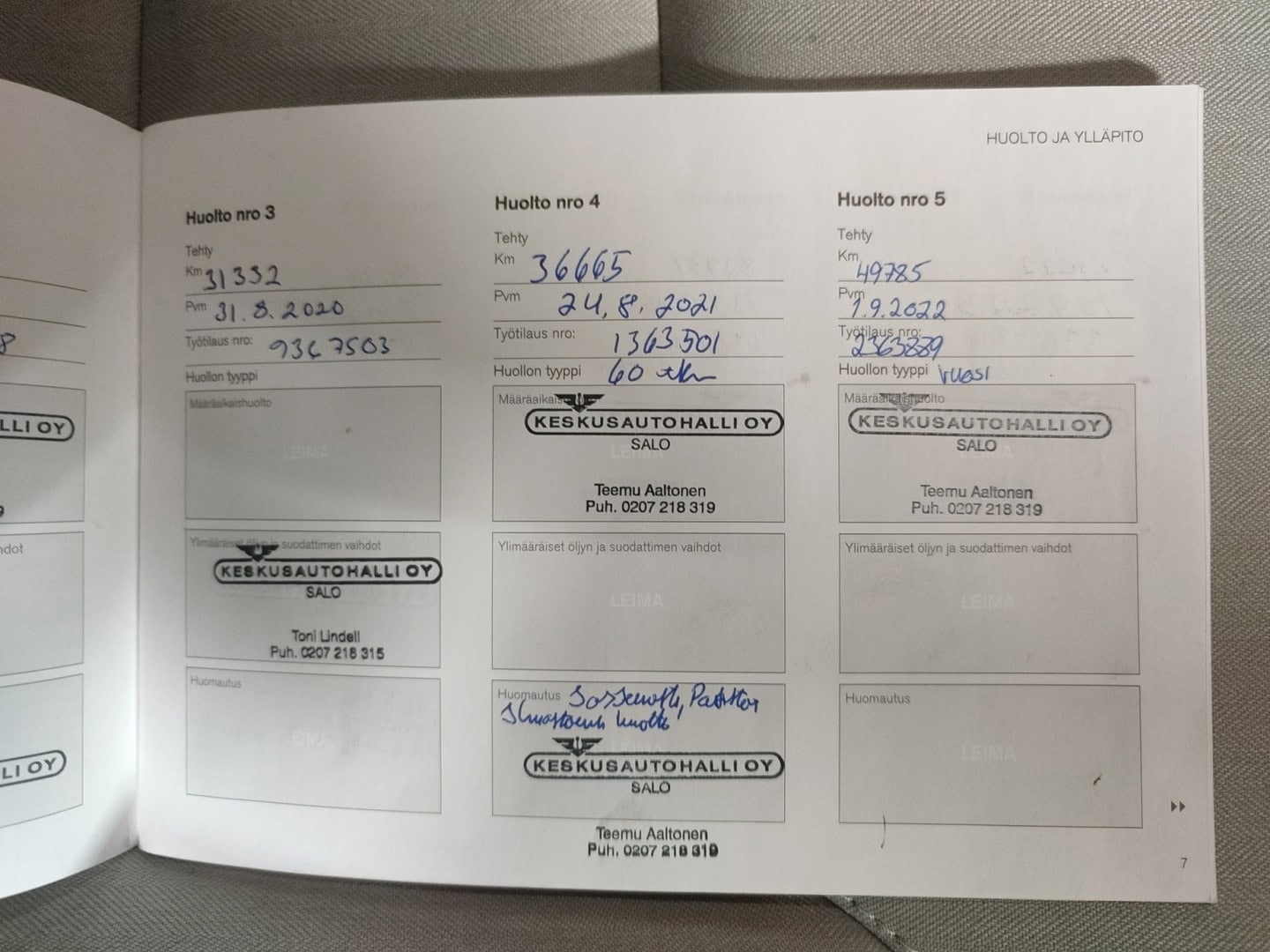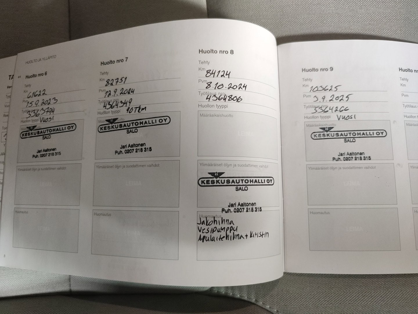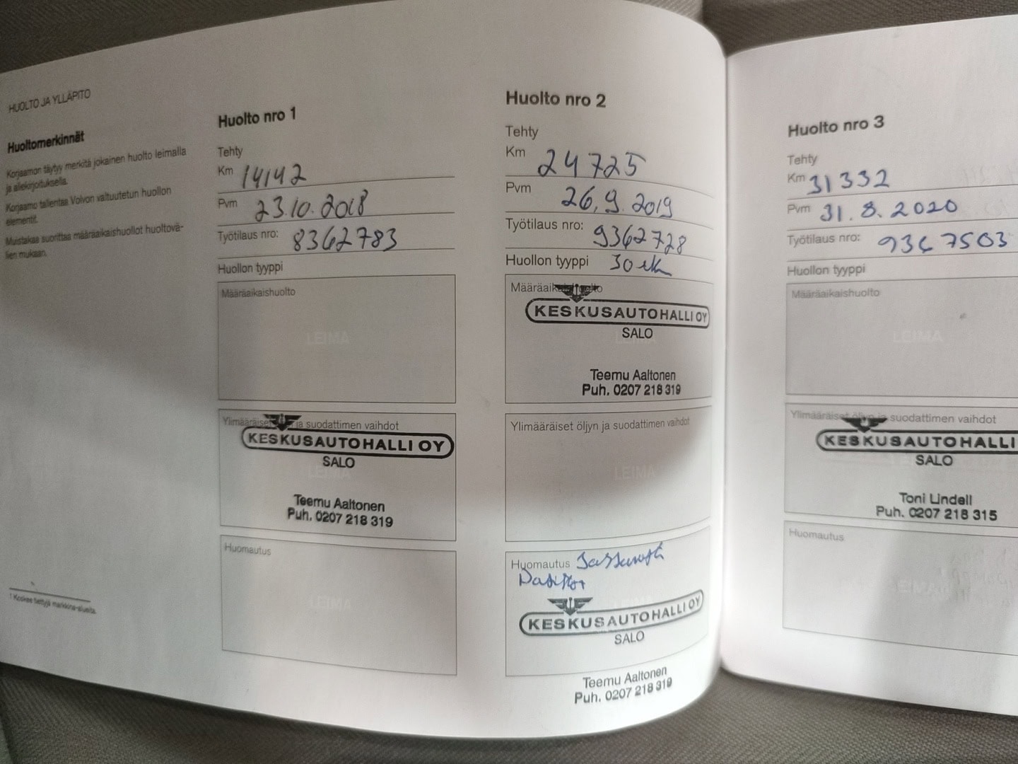 • Täydellinen merkkiliikkeen huoltokirja
