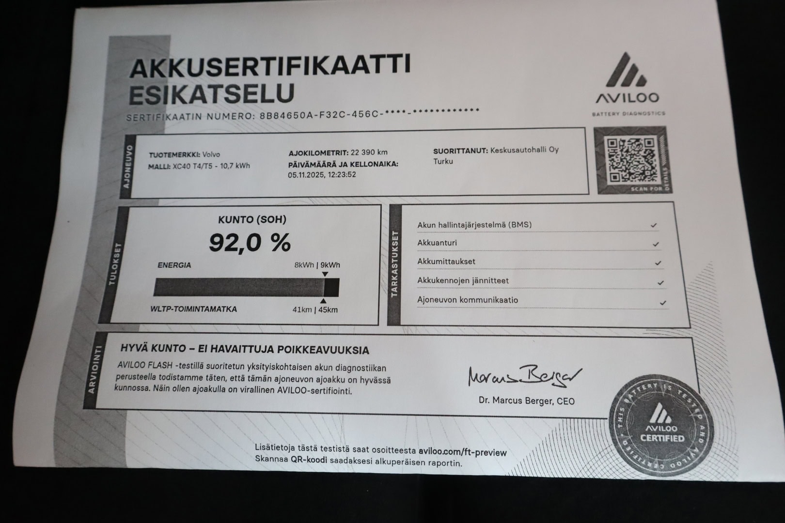 Voit varata auton kolmeksi päiväksi maksamalla 200 € varausmaksun. Maksettuasi varausmaksun, poistamme auton verkkokaupasta kaupan teon ajaksi. Varauksen jälkeen myyjämme ottavat sinuun yhteyttä mahdollisimman nopeasti. Varausmaksu huomioidaan kauppasummassa ja se palautetaan tilillesi, jos kauppa ei toteudukaan. Lopullinen kauppasopimus tehdään yhdessä myyjän kanssa.