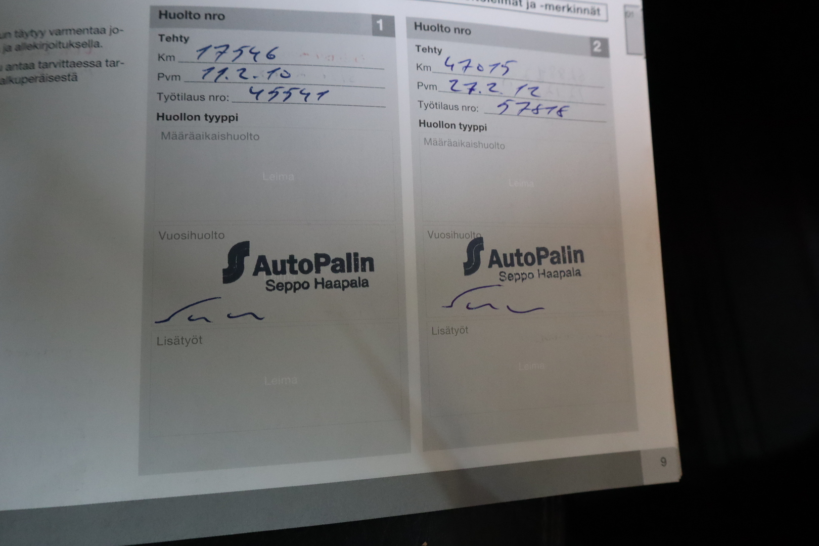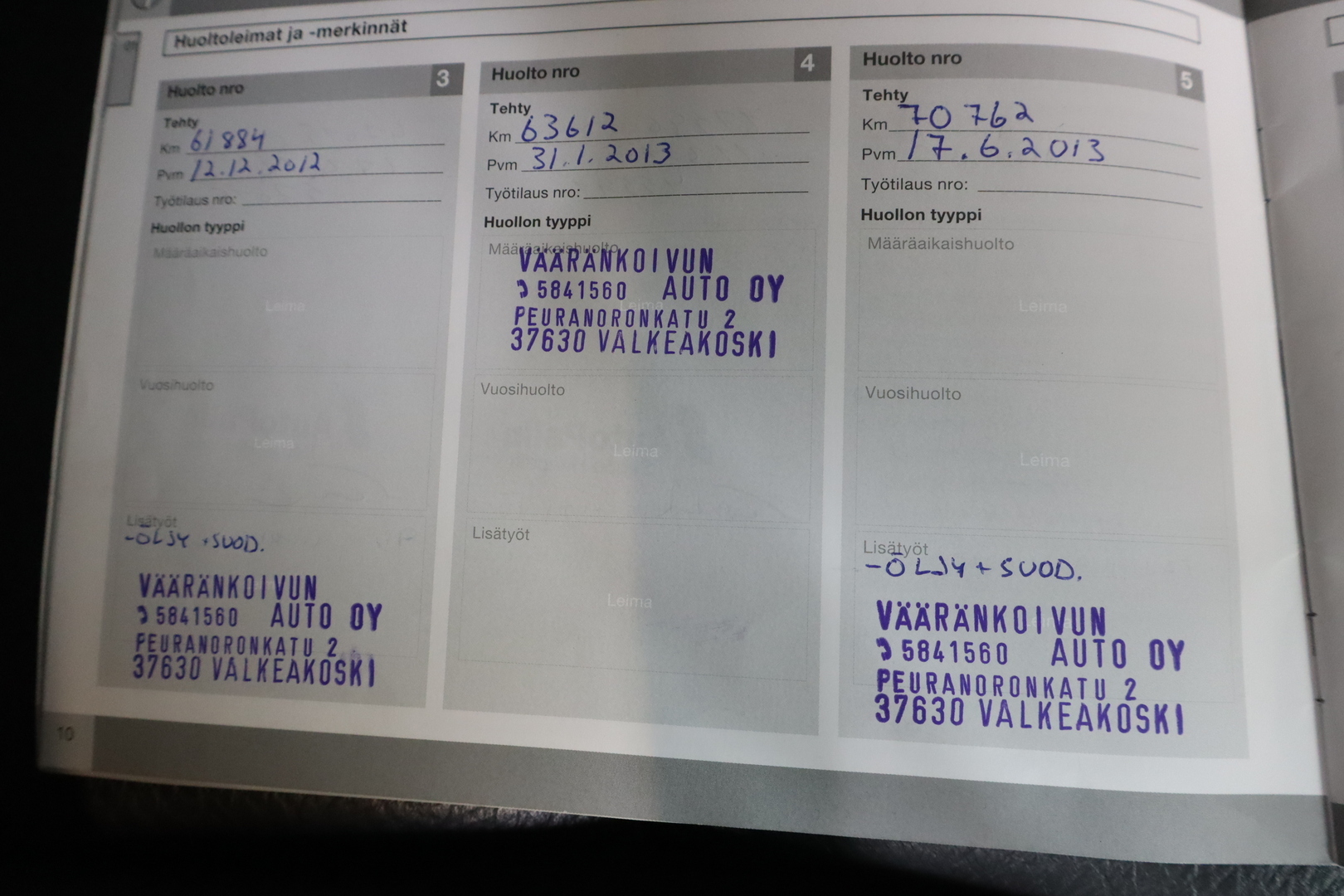 Ajoneuvosi tiedot