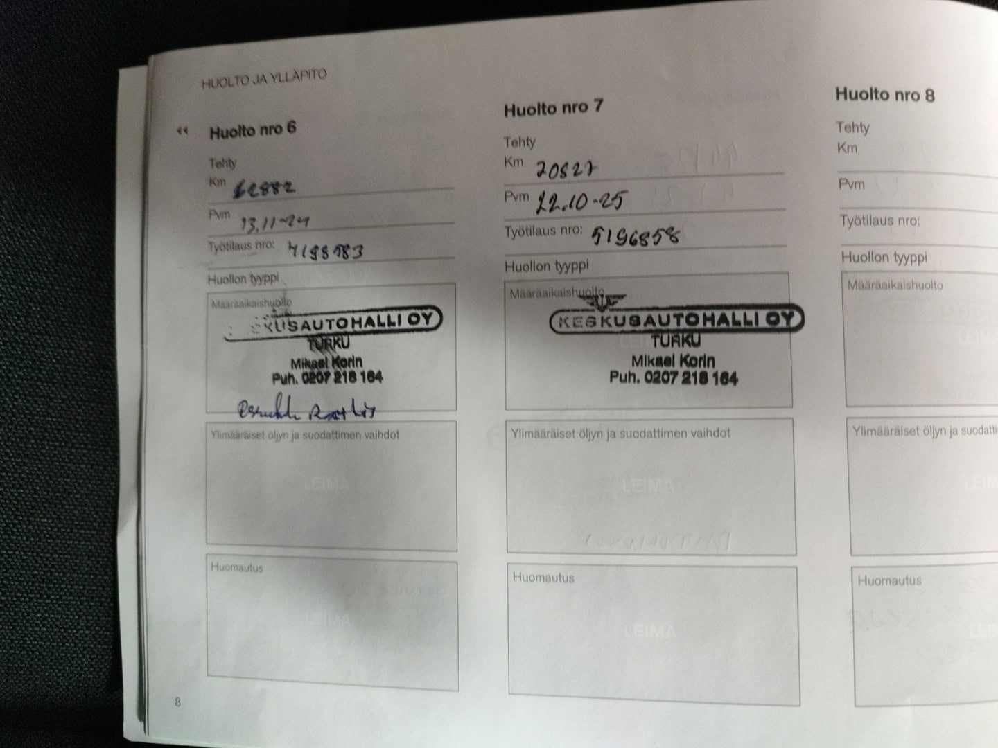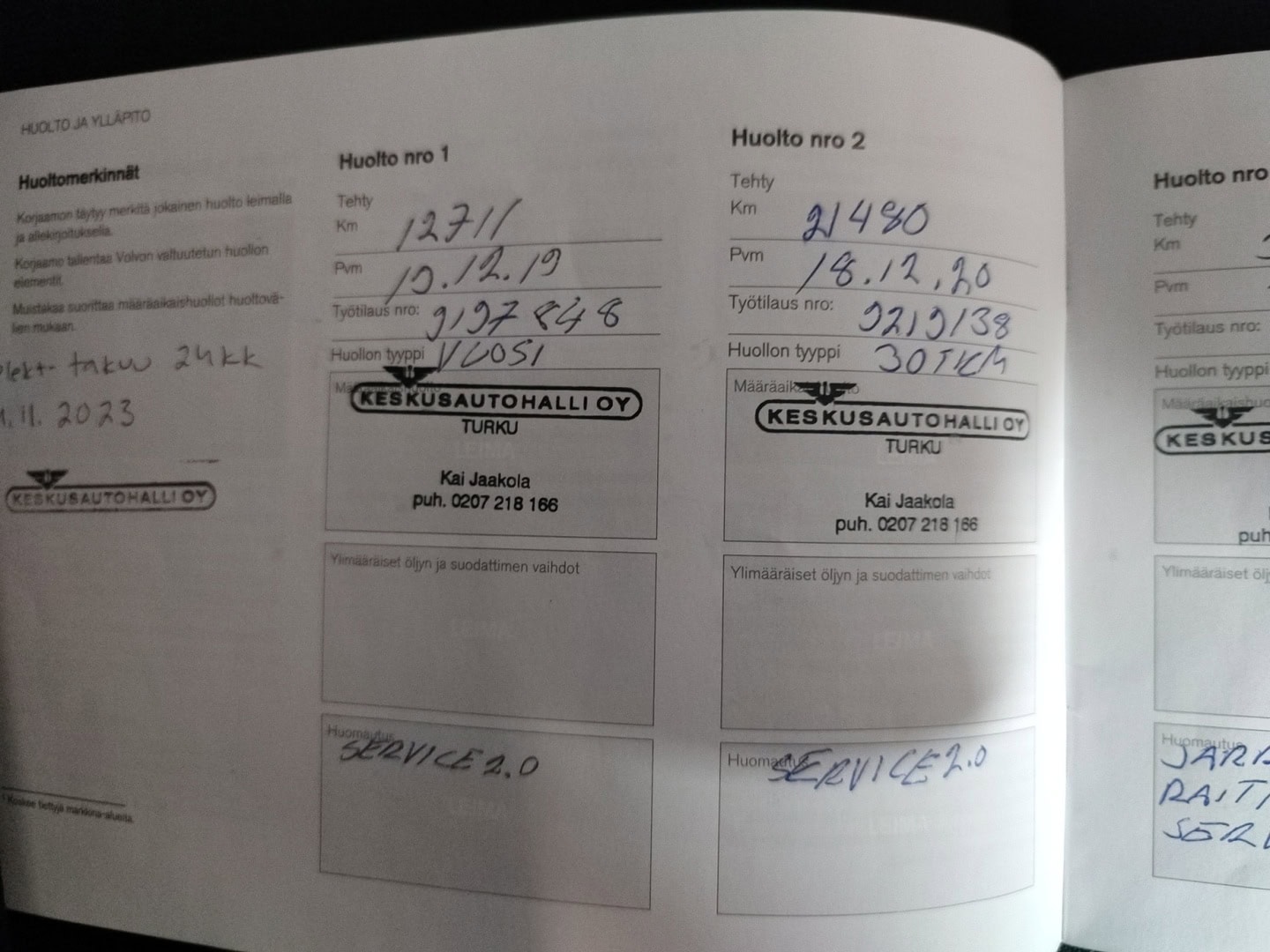 • Täydellinen merkkiliikkeen huoltokirja