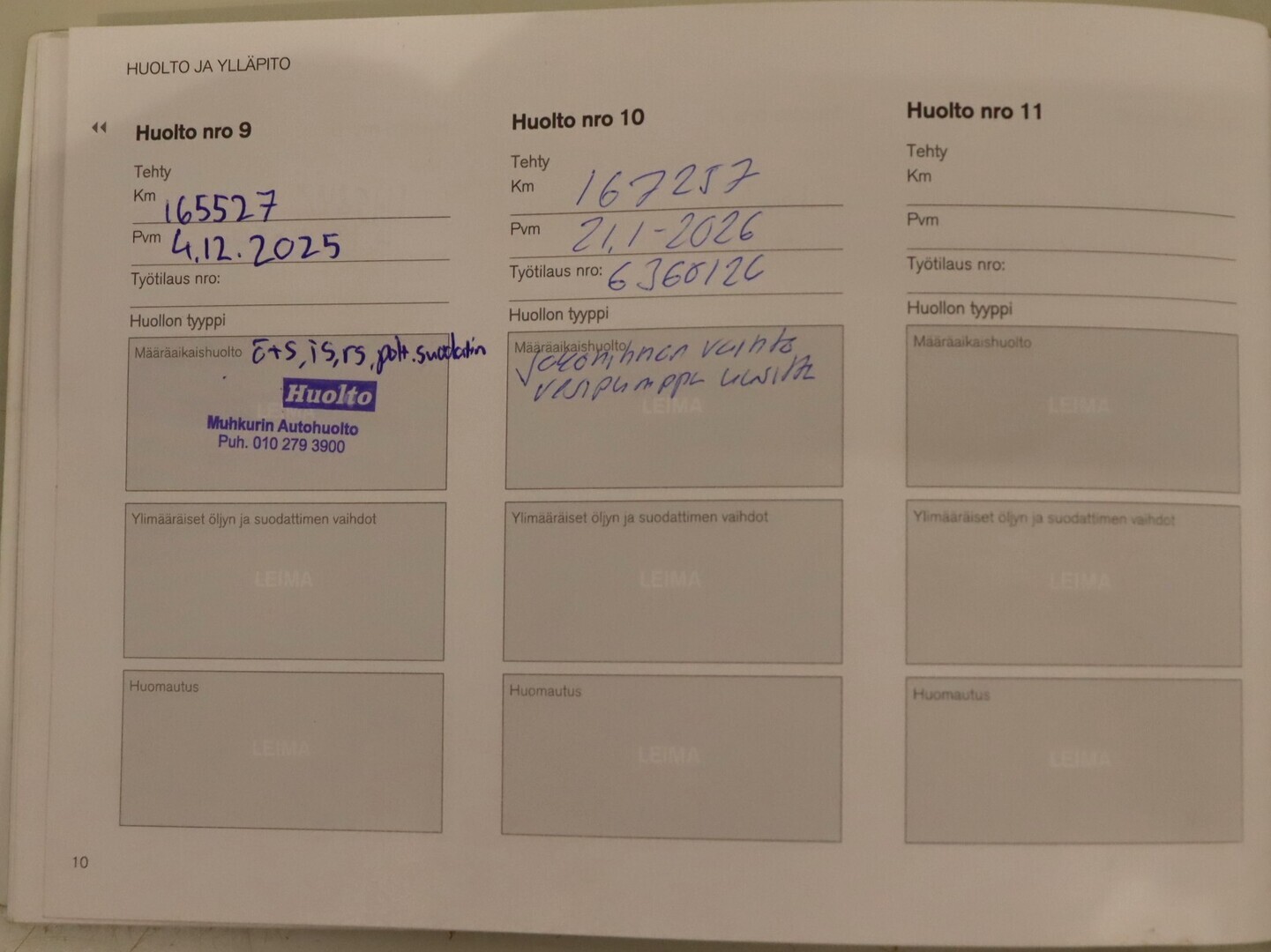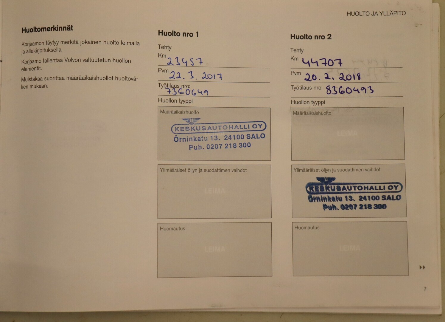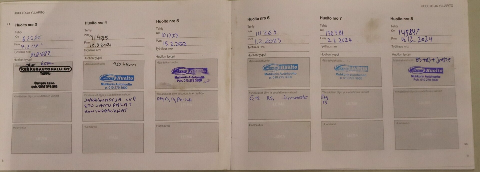 • Täydellinen huoltokirja
