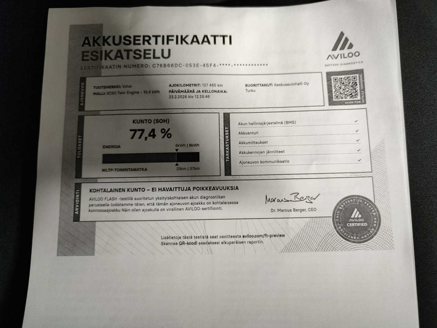 Voit varata auton kolmeksi päiväksi maksamalla 200 € varausmaksun. Maksettuasi varausmaksun, poistamme auton verkkokaupasta kaupan teon ajaksi. Varauksen jälkeen myyjämme ottavat sinuun yhteyttä mahdollisimman nopeasti. Varausmaksu huomioidaan kauppasummassa ja se palautetaan tilillesi, jos kauppa ei toteudukaan. Lopullinen kauppasopimus tehdään yhdessä myyjän kanssa.