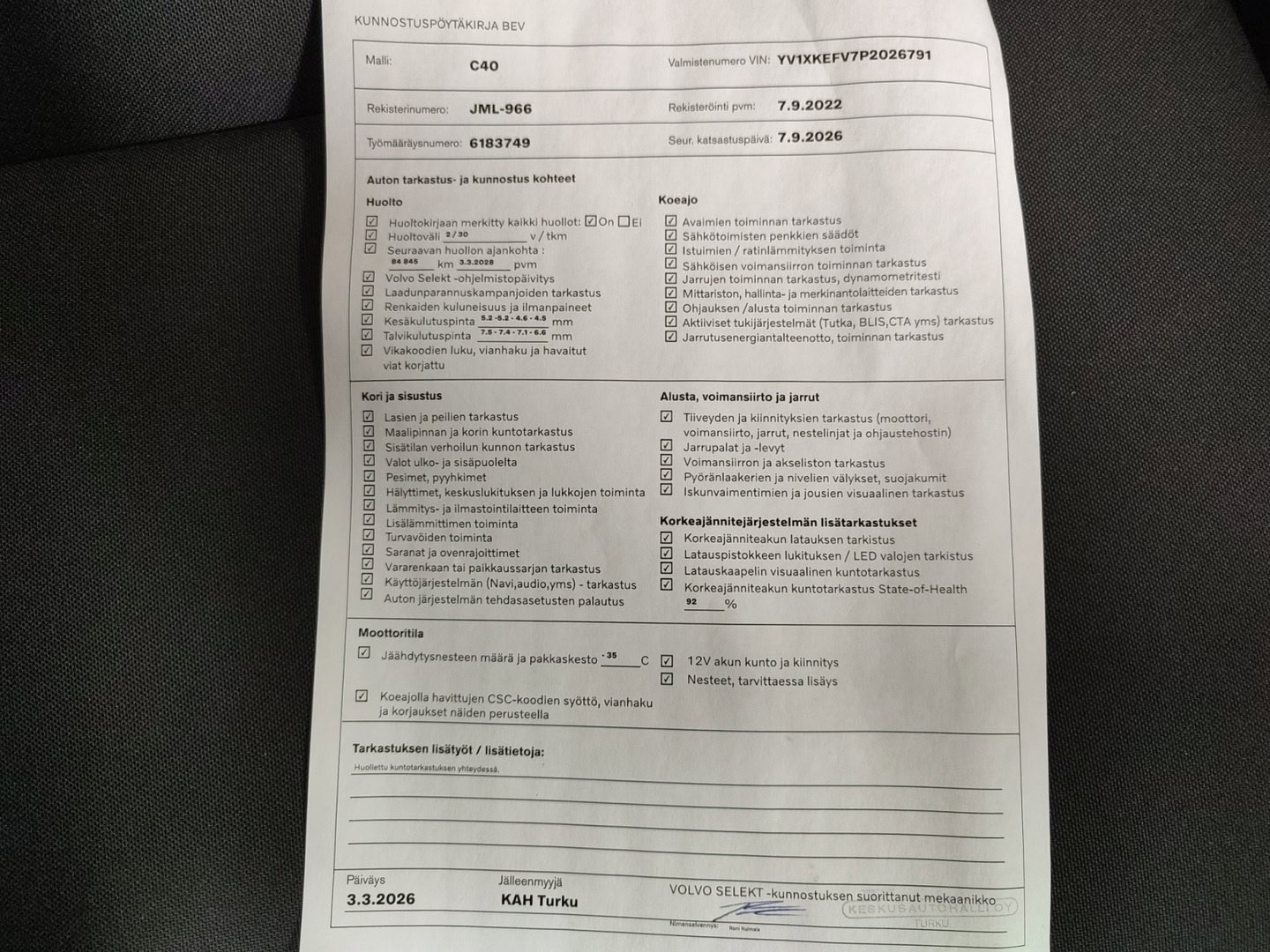 Voit varata auton kolmeksi päiväksi maksamalla 200 € varausmaksun. Maksettuasi varausmaksun, poistamme auton verkkokaupasta kaupan teon ajaksi. Varauksen jälkeen myyjämme ottavat sinuun yhteyttä mahdollisimman nopeasti. Varausmaksu huomioidaan kauppasummassa ja se palautetaan tilillesi, jos kauppa ei toteudukaan. Lopullinen kauppasopimus tehdään yhdessä myyjän kanssa.
