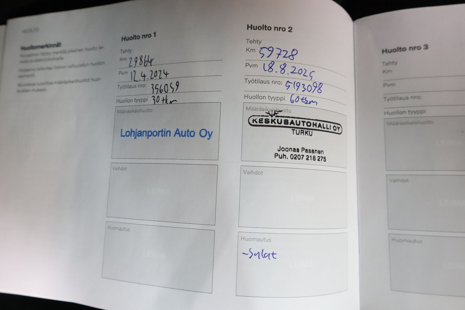 • Täydellinen merkkiliikkeen huoltokirja