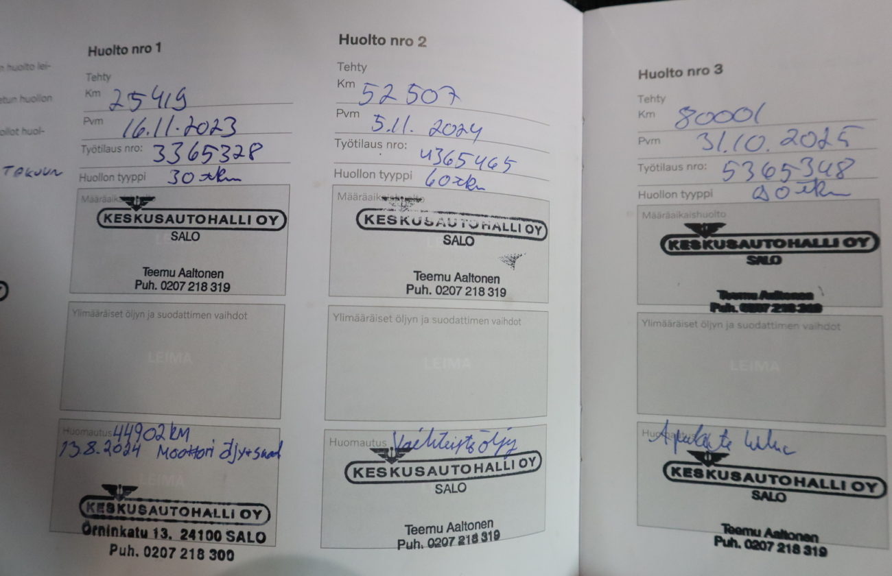 Voit varata auton kolmeksi päiväksi maksamalla 200 € varausmaksun. Maksettuasi varausmaksun, poistamme auton verkkokaupasta kaupan teon ajaksi. Varauksen jälkeen myyjämme ottavat sinuun yhteyttä mahdollisimman nopeasti. Varausmaksu huomioidaan kauppasummassa ja se palautetaan tilillesi, jos kauppa ei toteudukaan. Lopullinen kauppasopimus tehdään yhdessä myyjän kanssa.