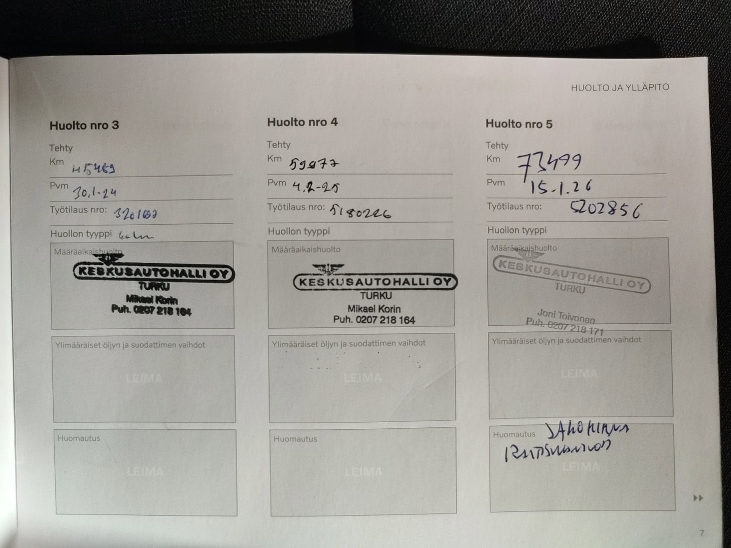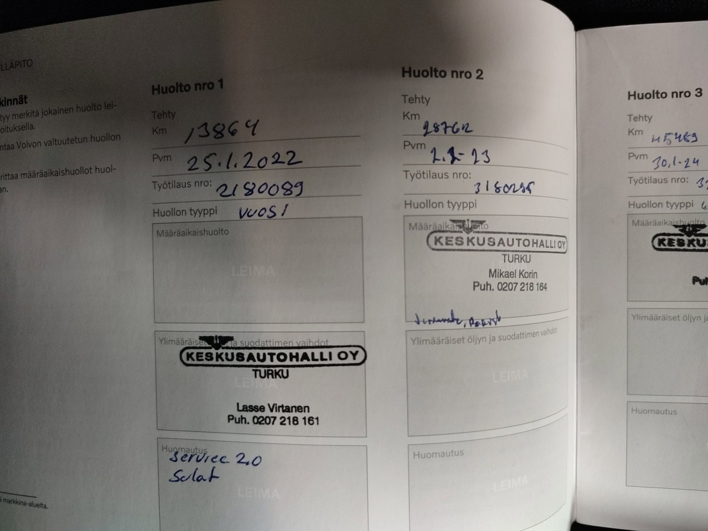 • Täydellinen merkkiliikkeen huoltokirja