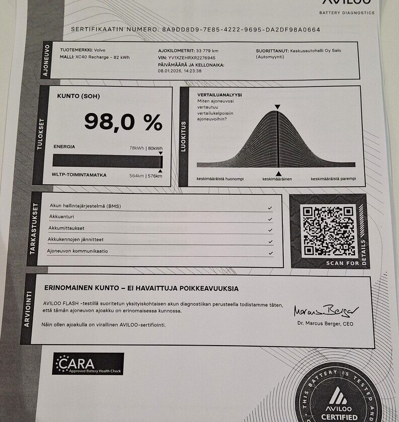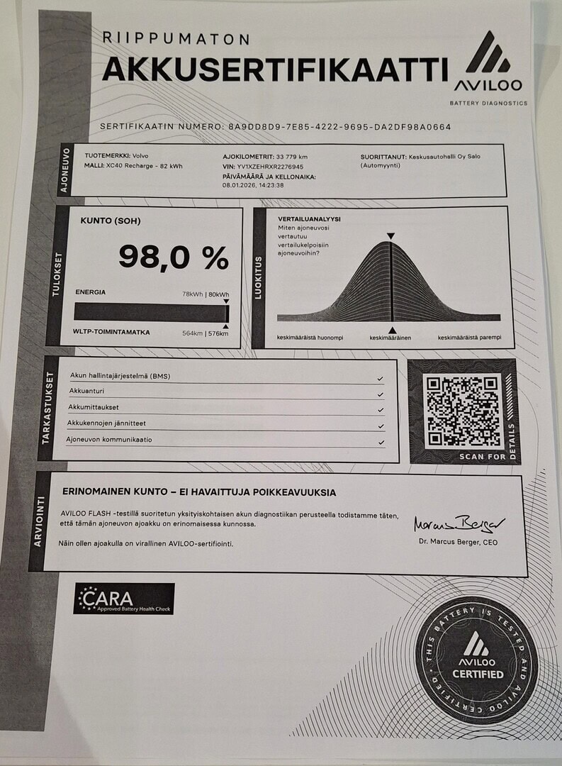 Voit varata auton kolmeksi päiväksi maksamalla 200 € varausmaksun. Maksettuasi varausmaksun, poistamme auton verkkokaupasta kaupan teon ajaksi. Varauksen jälkeen myyjämme ottavat sinuun yhteyttä mahdollisimman nopeasti. Varausmaksu huomioidaan kauppasummassa ja se palautetaan tilillesi, jos kauppa ei toteudukaan. Lopullinen kauppasopimus tehdään yhdessä myyjän kanssa.