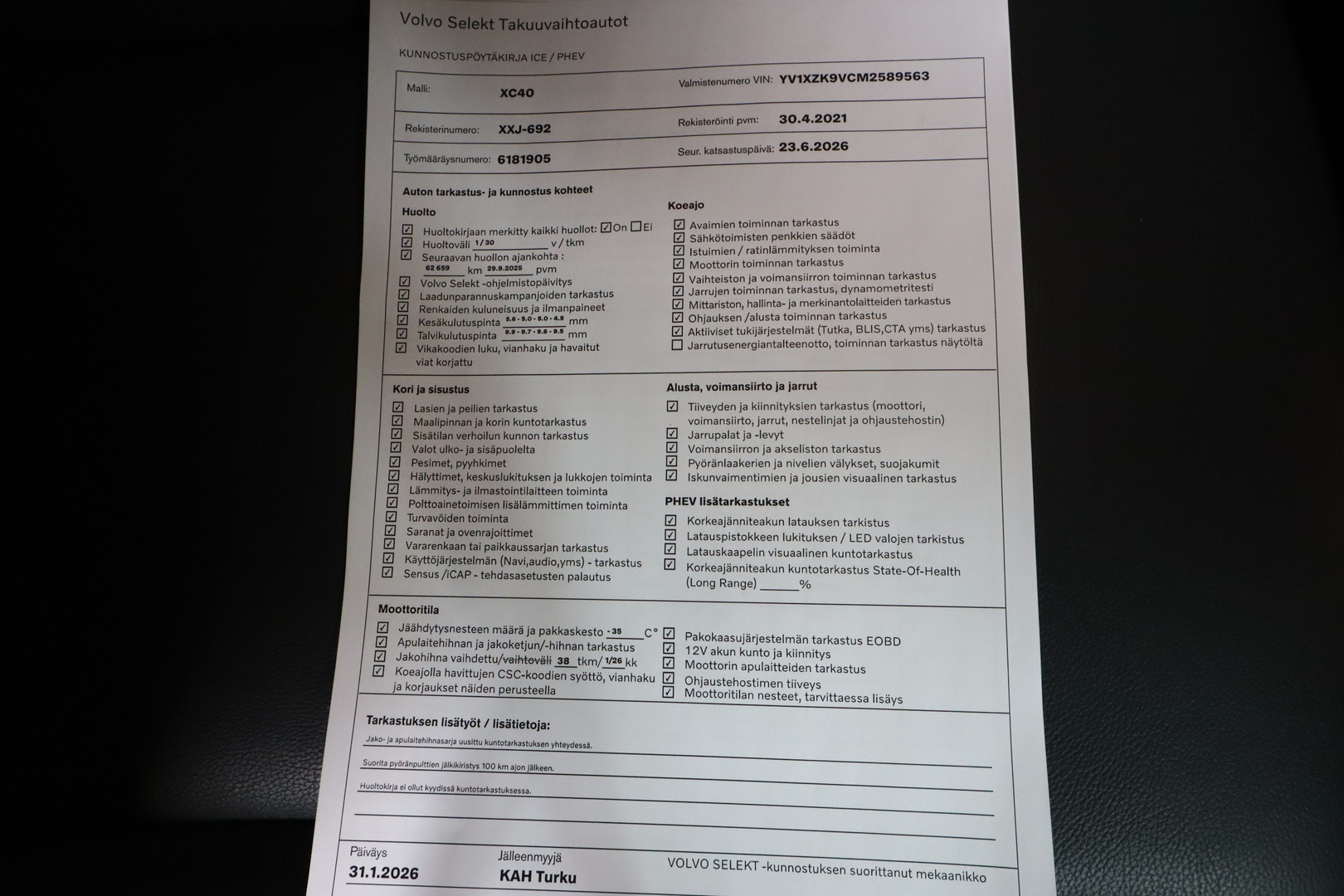 • Volvo selekt takuu 12kk ilman km rajaa