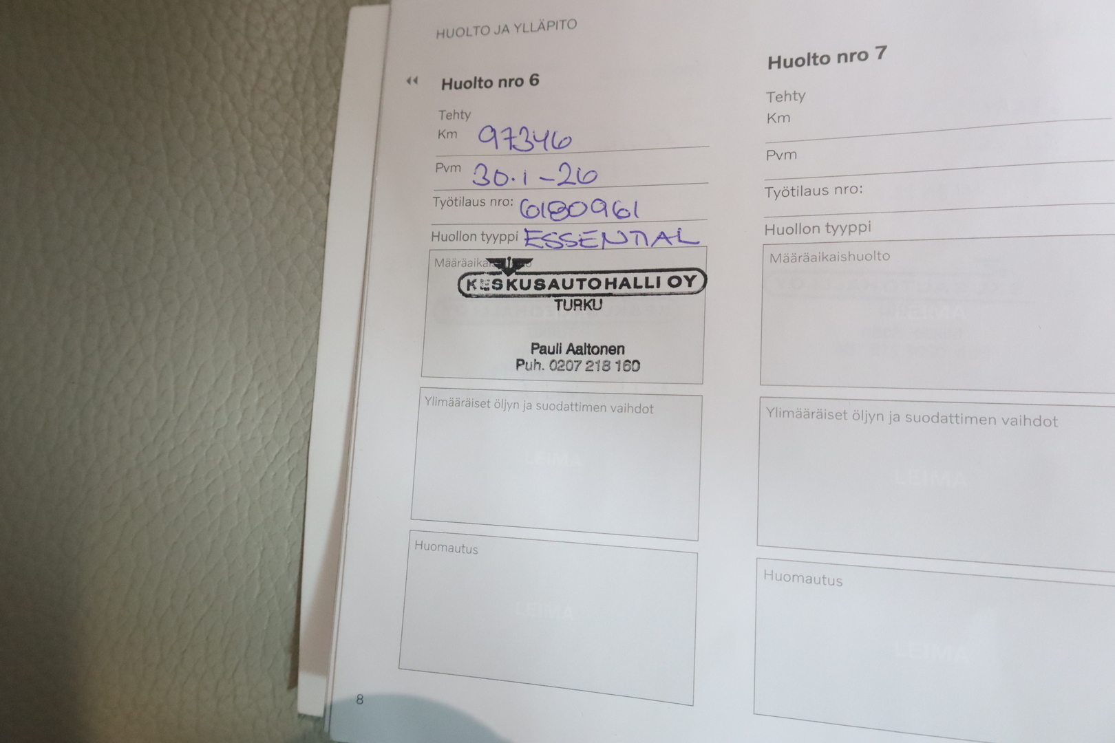 Täydellinen merkkiliikkeen huoltokirja
