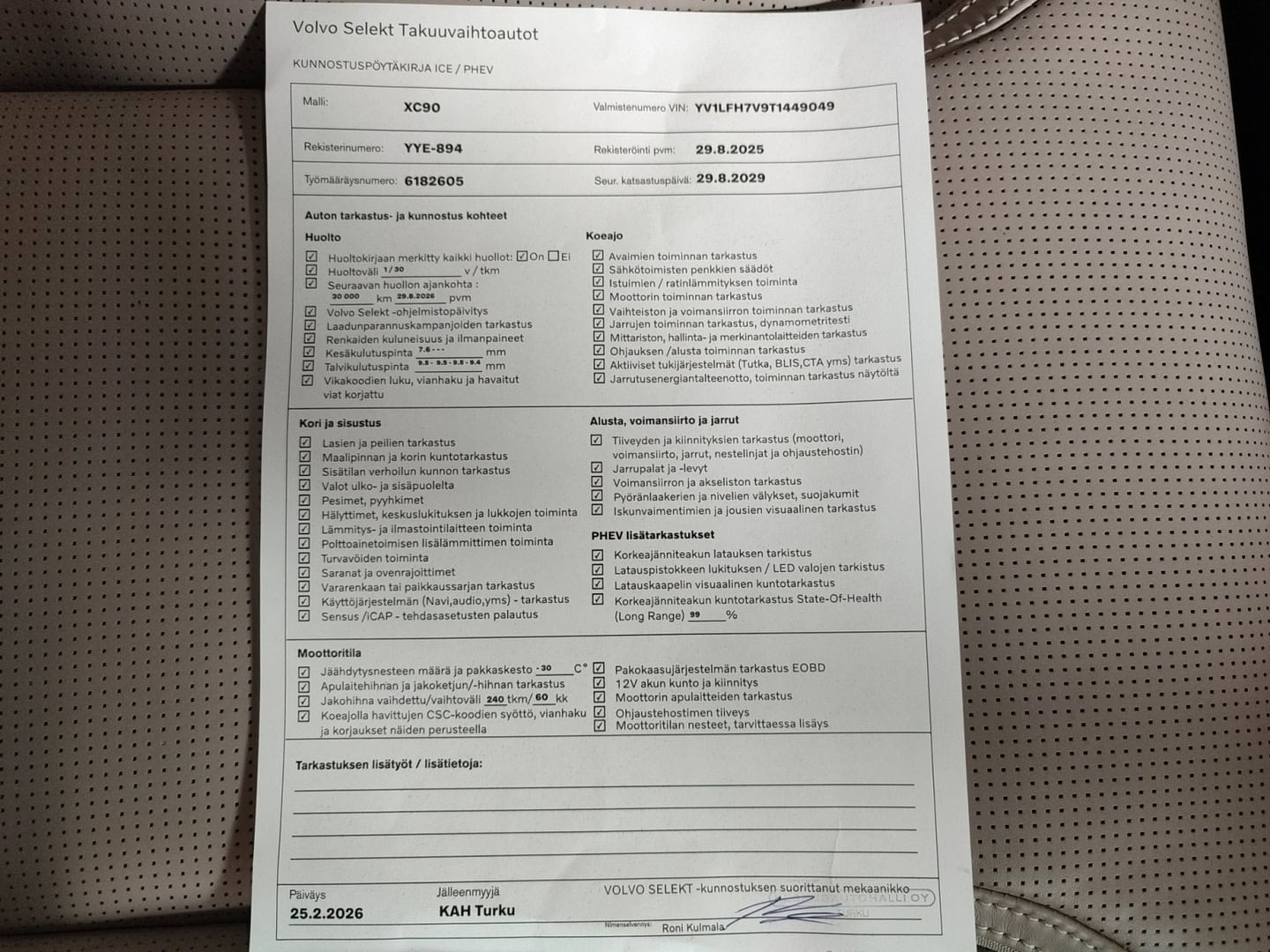 Voit varata auton kolmeksi päiväksi maksamalla 200 € varausmaksun. Maksettuasi varausmaksun, poistamme auton verkkokaupasta kaupan teon ajaksi. Varauksen jälkeen myyjämme ottavat sinuun yhteyttä mahdollisimman nopeasti. Varausmaksu huomioidaan kauppasummassa ja se palautetaan tilillesi, jos kauppa ei toteudukaan. Lopullinen kauppasopimus tehdään yhdessä myyjän kanssa.