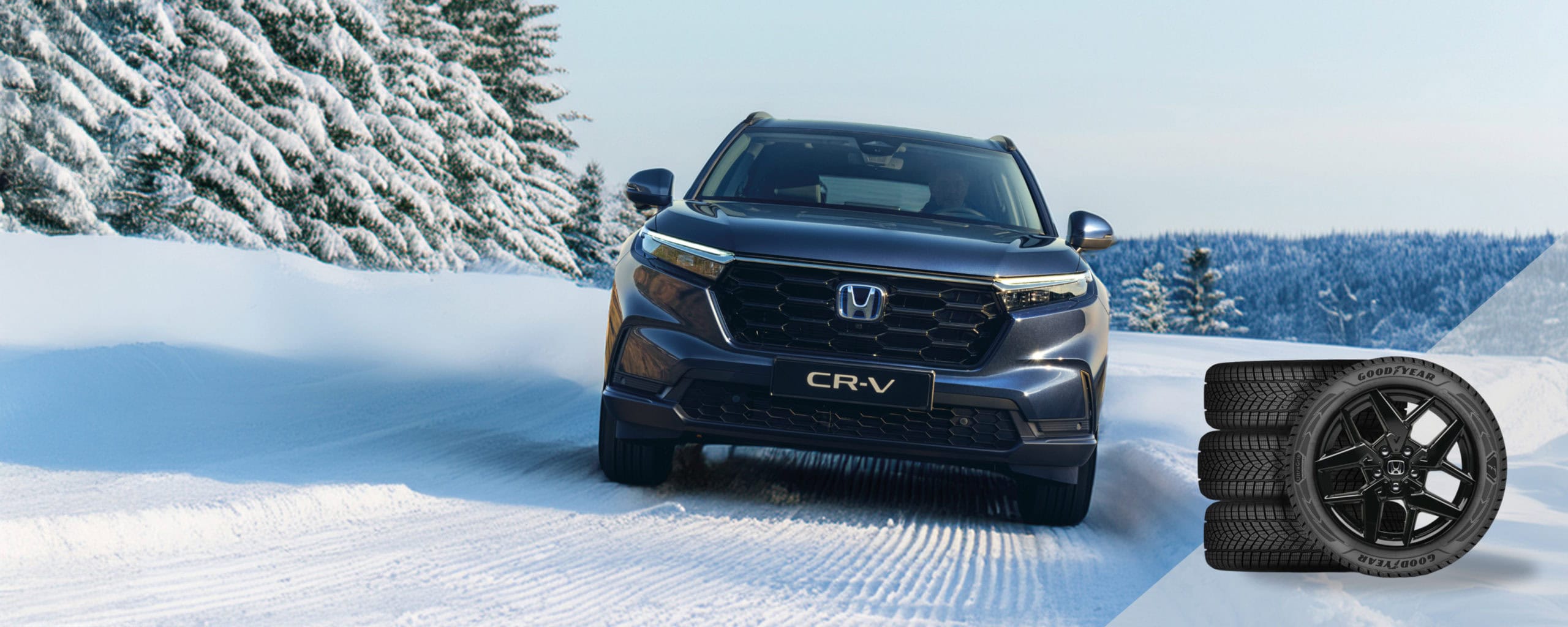 - Valituille CR-V varastoautoille – Jet Black väriin maalatut 18″ CR1812-kevytmetallivanteet ja GoodYearin kitka- tai nastarenkaat veloituksetta (etusi 3047 €).